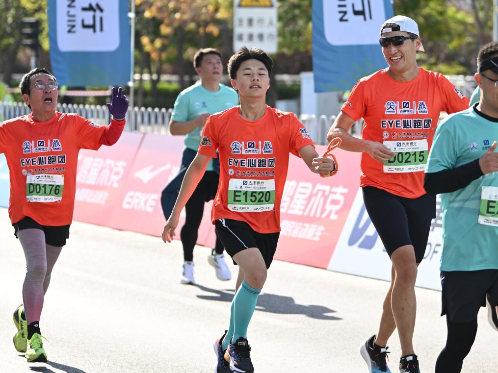 組圖馬拉松賽道上的視障跑團 馬拉松賽道上的視障跑團